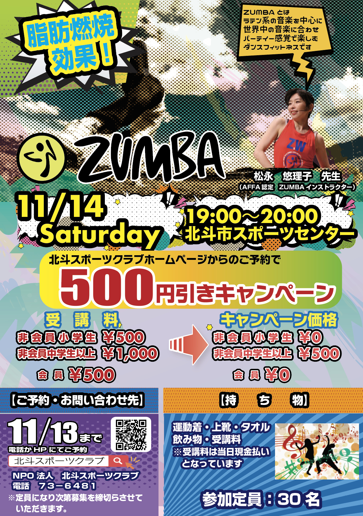 ◎11月13日までに、北斗スポーツクラブにお電話か、直接窓口まで。