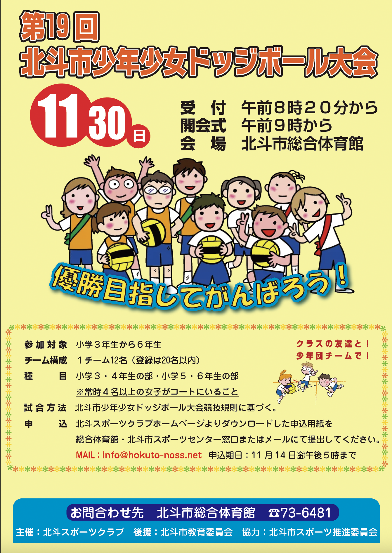 ※詳細については、第19回北斗市少年少女ドッジボール大会 開催要項をご覧ください。