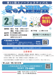 スノーフェスティバル「冬の大運動会」の申込みを開始します。