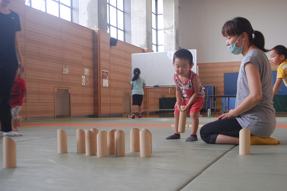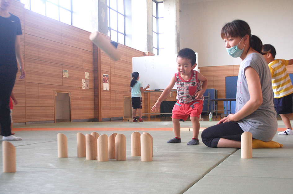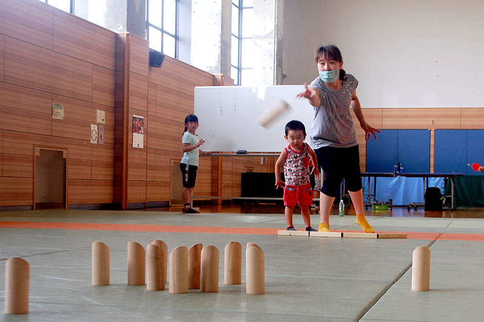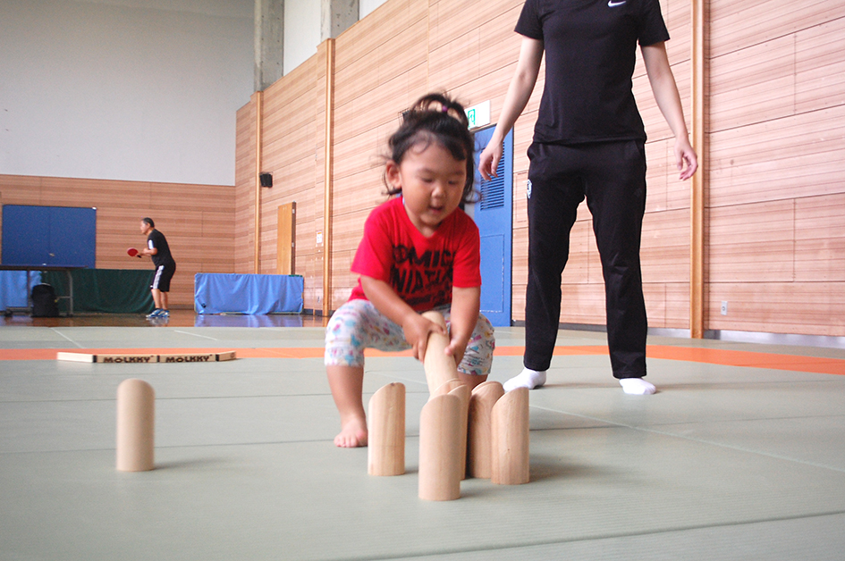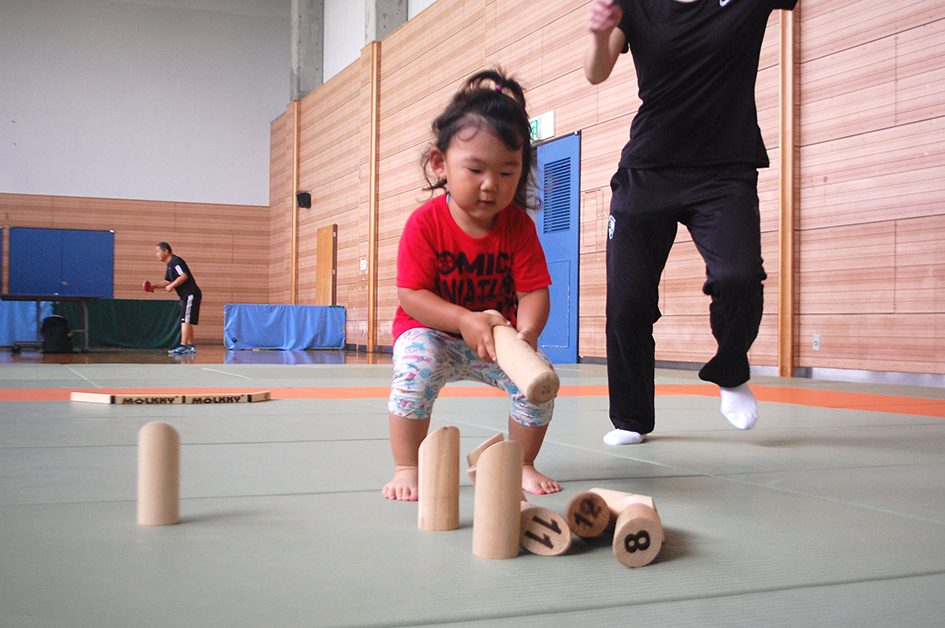 「お母さんと一緒にモルックにチャレンジ」